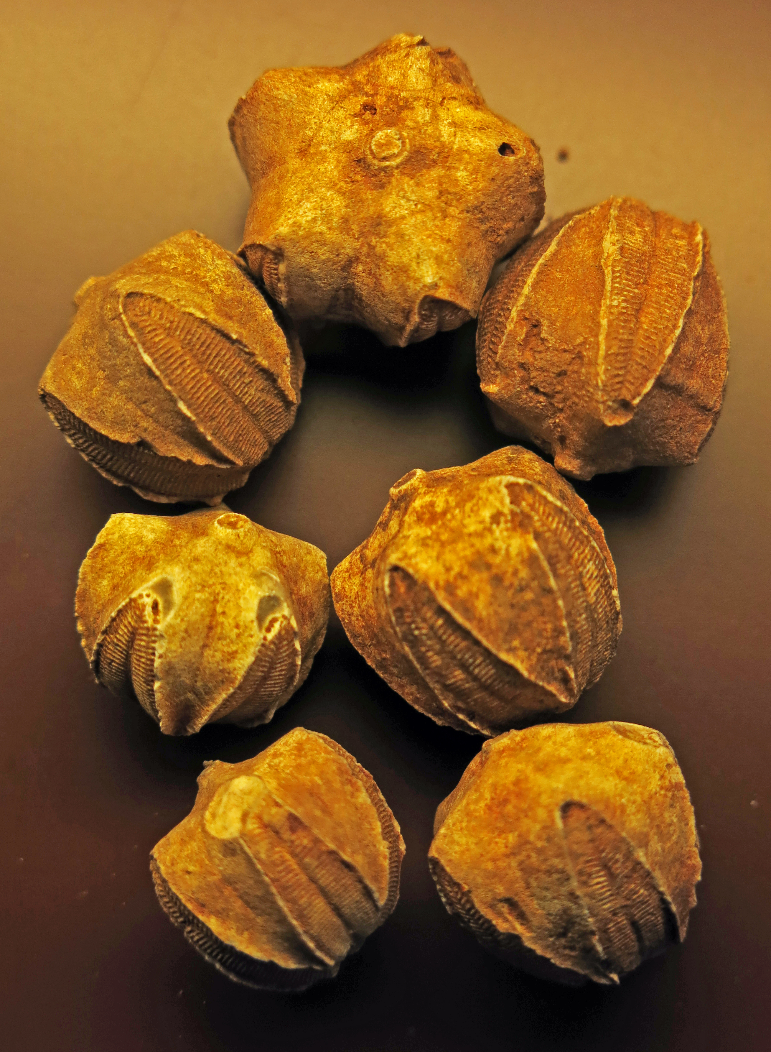 These dinosaur eggs in the Natural History Museum of Vienna appear to have been identified in two different ways: