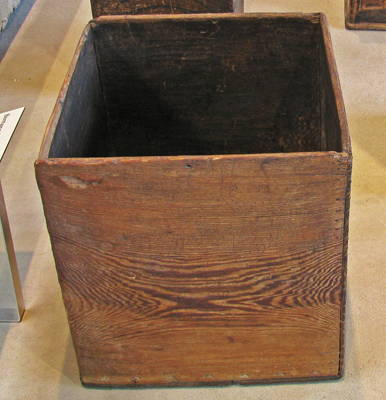 Placed beside the fire, the box was partly filled with water. The cook would drop red-hot stones inside to bring water to the boil. Foods would then be added, sometimes held in an openwork basket.