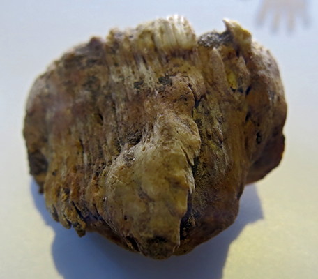 Knee cap (patella) of the 50 year old man with additional ossification due to overload on his one good leg.