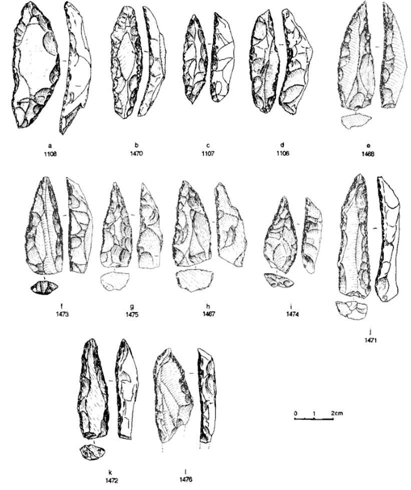 The skull rested in one of three closely spaced thin occupational soil strata. These lay within a discontinuous thickness of rockfalls extending between the depths of 11 feet 6 inches and 18 feet below 'o' datum at that point. Immediately on top of the approximately 3 foot layer of stones above the skull was a dark-brown loamy soil layer identified as Layer C. it contained heavy occupational evidence, including Baradostian flints. This was the cultural horizon to which Smith mistakenly thought the skull belonged.