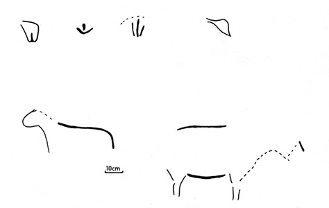 Cave interior. Labelled on the data set as 'lines', this appears to portray the head of a bear, as well as 'X' markings.