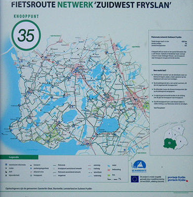 Scharsterrijnbrug, a bridge over a canal, was just before Joure and Heerenveen. The large sign was great, but it was probably put there for the convenience of canal traffic rather than cyclists.