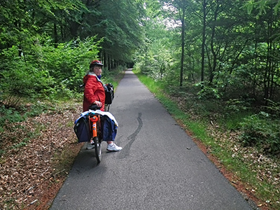 We followed the signs above, and turned into a dedicated cycle way through a wonderful forest.