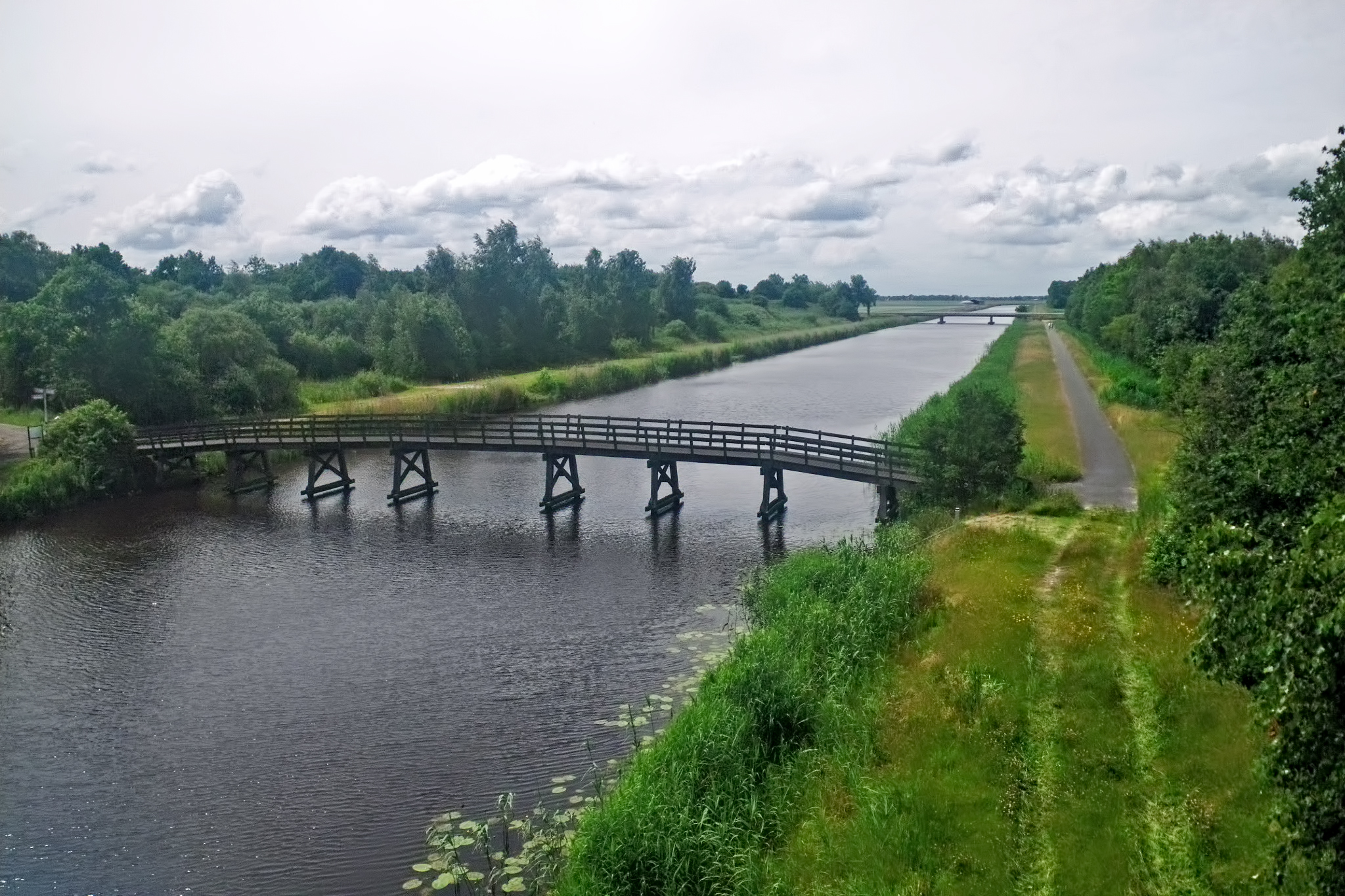 Crossing the Kanaal Veendam-Musselkanaal after leaving Stadskanaal. A low, narrow bridge also crossed the canal close by, for local cycling traffic.