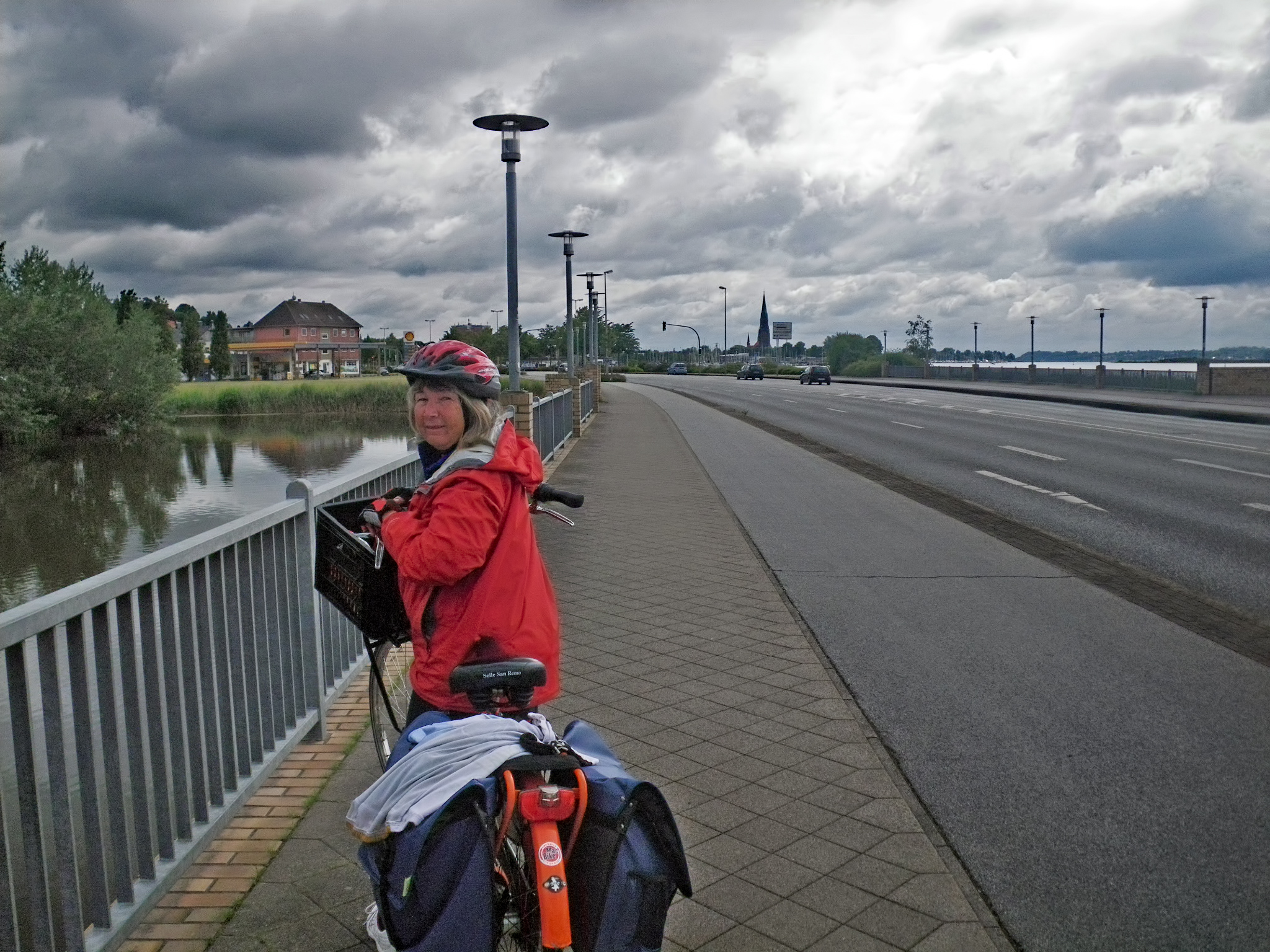 Crossing the Gottorfer Damm at the entry to Schleswig. The weather was cool and grey.