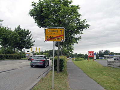 I was awakened by birdsong just after 0400h but we didn't get up until 0515h. We packed, had a cuppa, did our normal bathroom things and were on the road at 0615h. We rode through Ahlefeldt then north to Brekendorf and then followed the yellow brick road (no radweg) to Busdorf where we did some supermarket shopping and looked for a place for breakfast. We found a good place on the outskirts of Schleswig. We then mucked around looking for a way out of town.