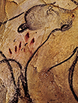 Chauvet Cave The mane of the horse retains the fingerprints of the artist, who demonstrates superb control of the medium. On the neck of the horse may be seen three white dots. See: Chauvet Cave Horse 1 |