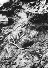 These few fragments of a skull and some bones belong to a foetus of seven months buried in a shallow oval depression and covered with a mound of earth.