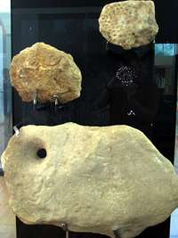 ** (footnote) We can not help but think of the pebbles hammered in the same way at one or two points which M. Chatellier has reported in a very large number of Breton megalithic burials.