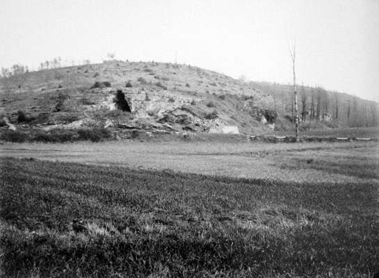 This is an early photograph of La Ferrassie, denuded of vegetation, presumably by goats.