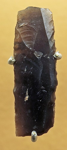 This layer also contained a large number of very well retouched flints (points, scraper-knives and discs) characteristic of the Lower Mousterian age as well as pebbles of quartz serving as hammers or bone smashers. The same pieces were found around, on and below the skeleton, but this latter level was blended with those of the underlying layer containing more axes of the type of St. Acheul.