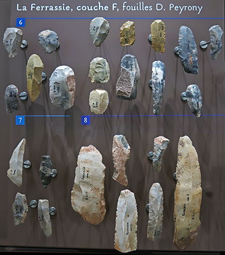 ( note that this image is from an apparently older display of various tools from various sites from the Aurignacian - Don )