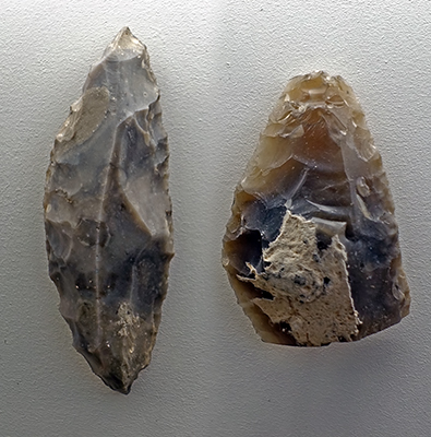 From left to right: Font Robert point (stemtip, tanged tool created on blade, shouldered point), Font Robert point, scraper.