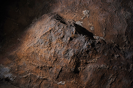 Alexey Solodey writes, 2019.08.23:I am glad to inform you that this summer in Kapova cave we found a new complex of images, which are engraved on the ceiling of low passage right before the Hall of Kupol, the first decorated hall of the ground floor of the cave. Now it is the second decorated one. On a region of approximately 10x15 metres we found about 30 panels with at least 50 depictions of animals. Most of the images were made with bare fingers in the soft substratum on the ceiling (we call that technique 'macaronis'), with artistically used natural forms of the relief of the rock – natural or corrected by humans. The height of the ceiling is circa from 1 to 3 m. Most of the images represent heads of an animal. Dimensions of the heads are circa from 20 to 60 cm. There are heads of horses, bear, deer, aurochs and possibly other animals. There are some full corpora depicted also: all of the mammoths (from 5 to 8 in number), two or three aurochs and several horses. There are images made with other techniques also: thin engravings, and black painting.