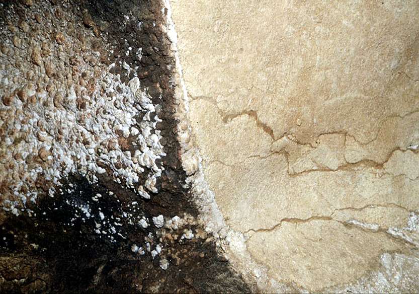 Thus, after approval of the curator of the cave and the director of scientific research, mould was removed on the lower wall, but only on undecorated areas was conducted, with brushes of different sizes and hardness, and used in the manner of surgical instruments. At the same time that this was done, residual organic deposits were removed by a special machine (a Gregomatic) from the undecorated areas.