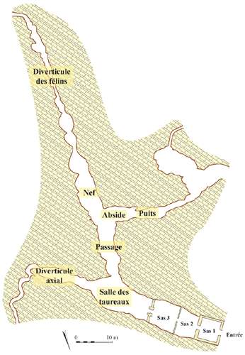 Map of Lascaux cave, Dordogne, France (redrawn after A. Leroi-Gourhan, (1984), « Grotte de Lascaux », in L'art des cavernes - Atlas des grottes ornées paléolithiques françaises, Ministère de la culture, ISBN 2-11-080817-9)