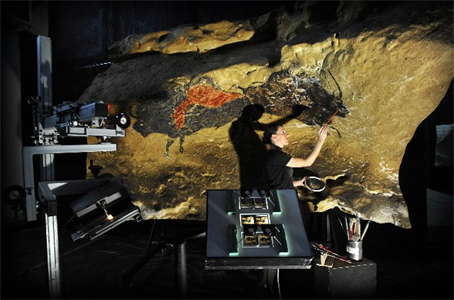 Atelier de Lascaux: a 3D digital model of the cave structure is provided, with interactive links to show which paintings are where, displayed in the recreation of Lascaux, Lascaux IV.