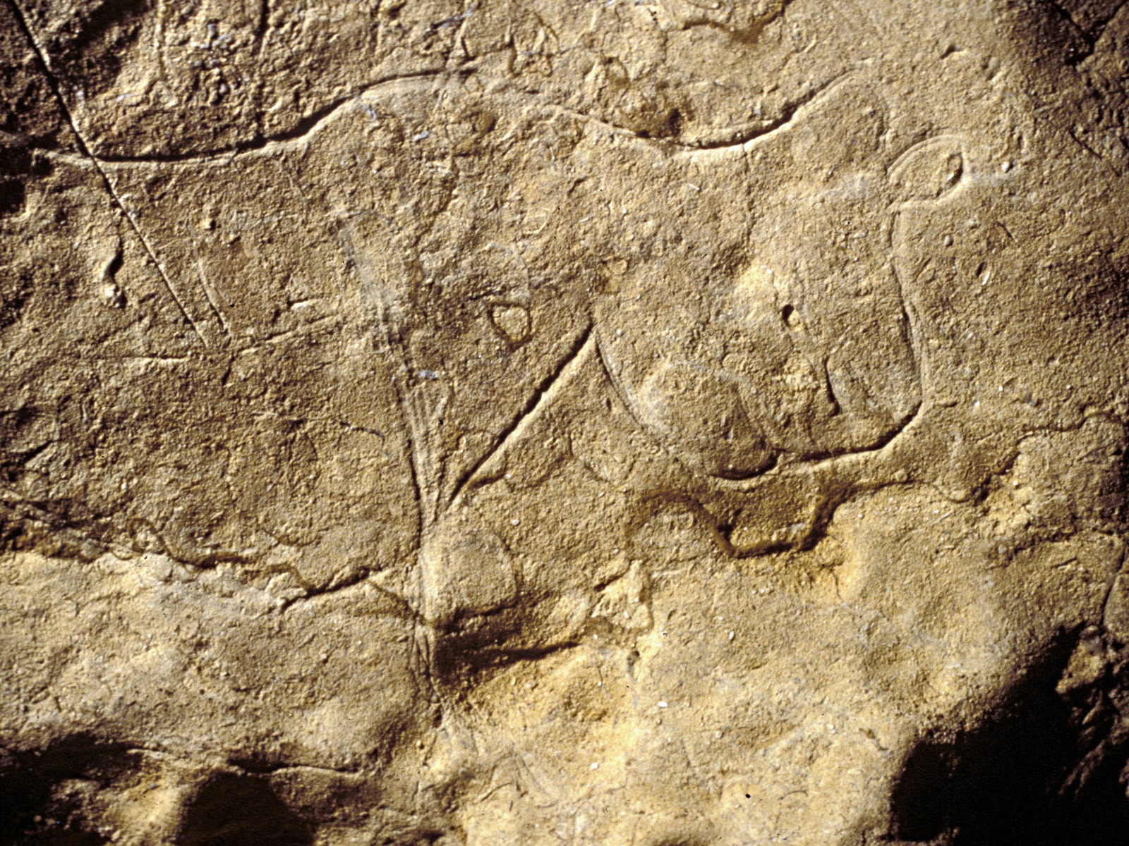 Aurochs in the Hall of the Bulls. Note the four short lines on the body of the aurochs.