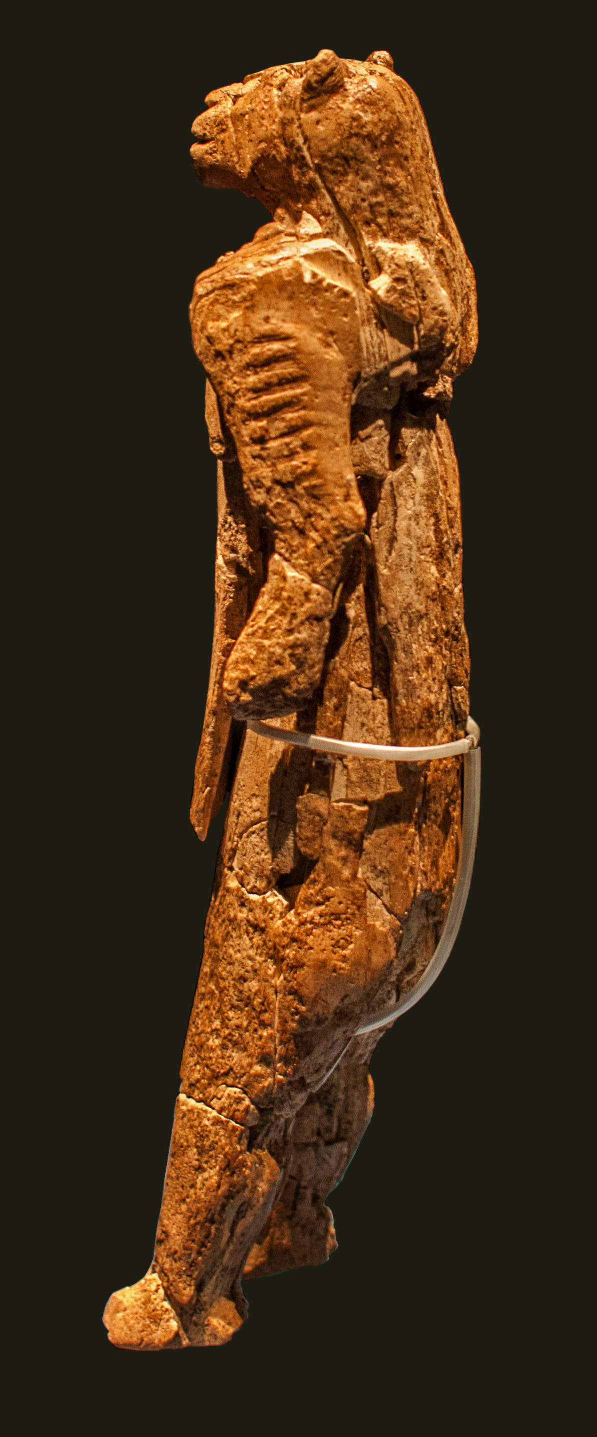 The Löwenmensch after restoration during 2012/2013, showing especially the extra pieces found of the face, and the missing right arm restored.