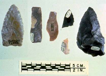 projectile points and tools. The Miller Lanceolate point, named for Albert Miller, is at left.