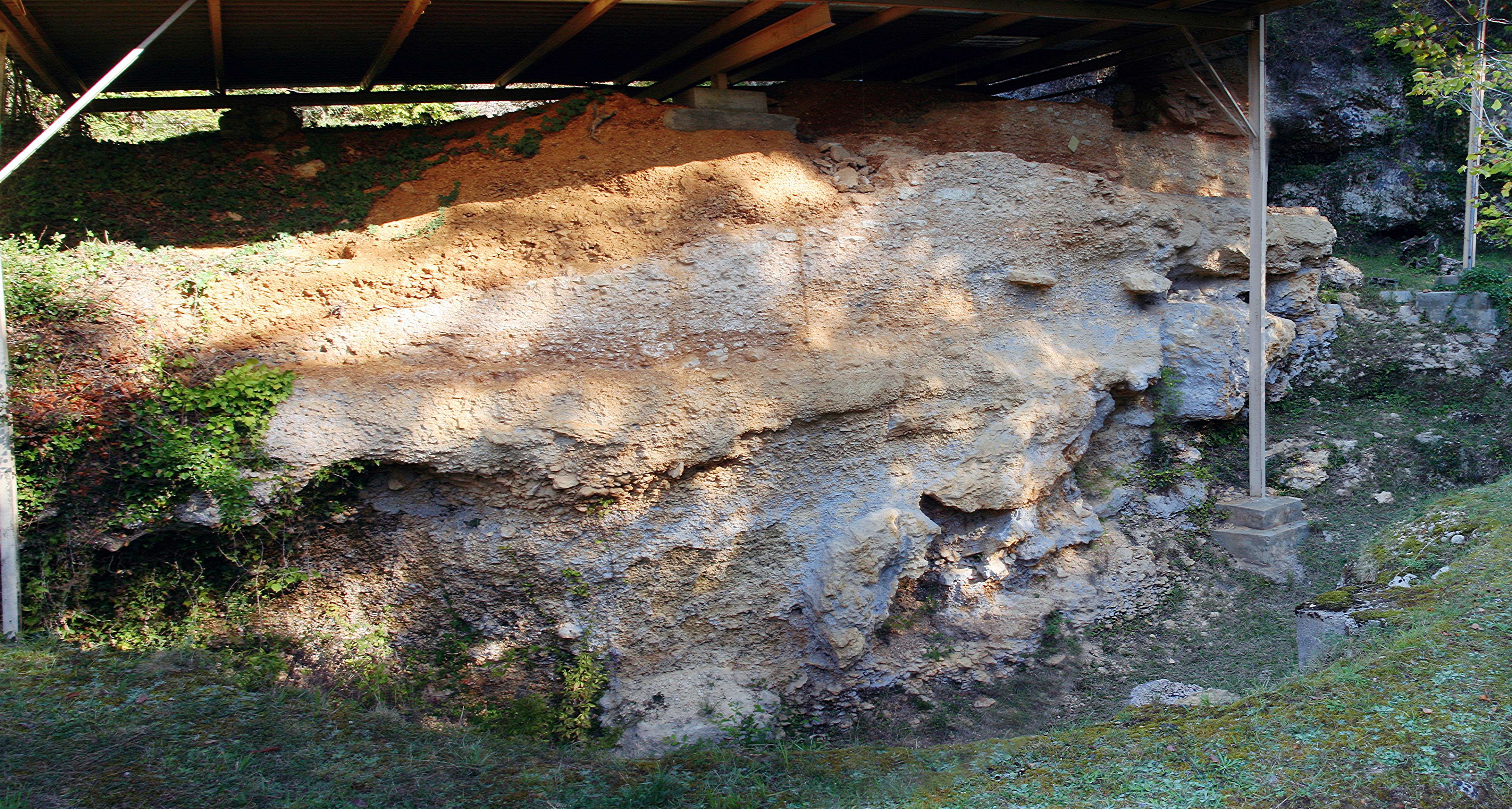 Before the first excavations, this part of the terrain was not distinguishable from the rest of the slope, which rests at an angle of 33°, apart from a few white limestone rocks poking out above the ground.