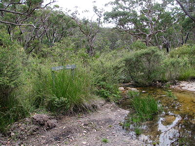 This is where the National Trail diverts from the fire trail to Grassy Creek, a few minutes walk past Dinner Creek.