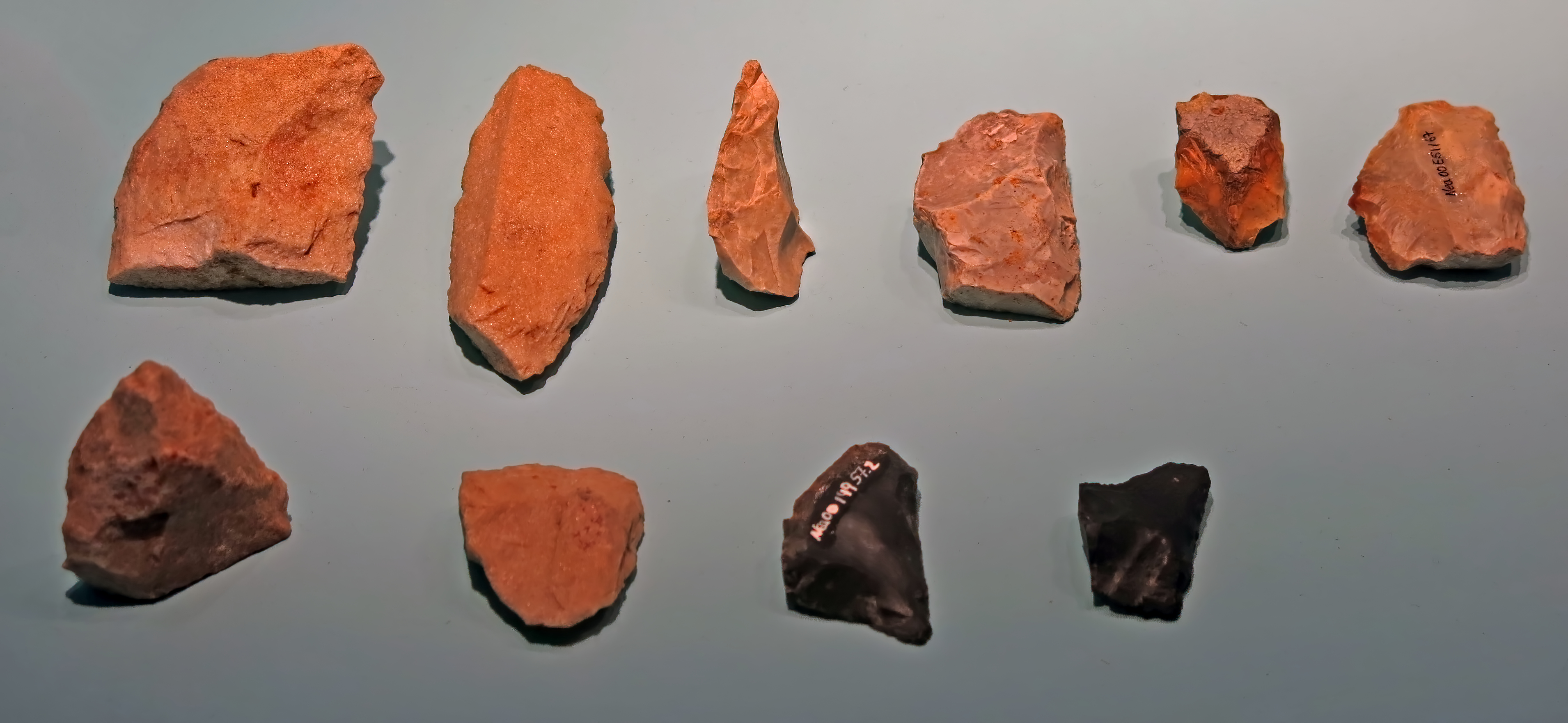 Burins of flint and dark radiolarite, a type of microcrystalline quartz.