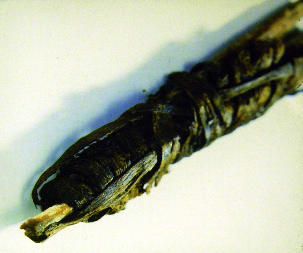 Close up of the quiver and the fletchings on the arrows Ötzi had with him.
