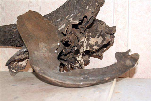 These are a bison horn, skull and jaw. They are in the school museum of Dubrava Village, Дубрава, (the Oak grove) of the Boguchar area.