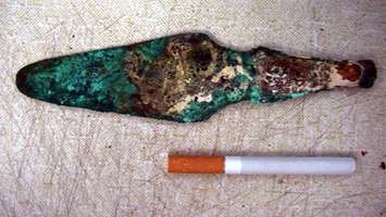 Found in the Boguchar area dig after the visit by Vladimir Gorodnjanski to the dig, in the central burial a bronze knife from the early срубная (srubnaya or srubna) culture, and vessels.