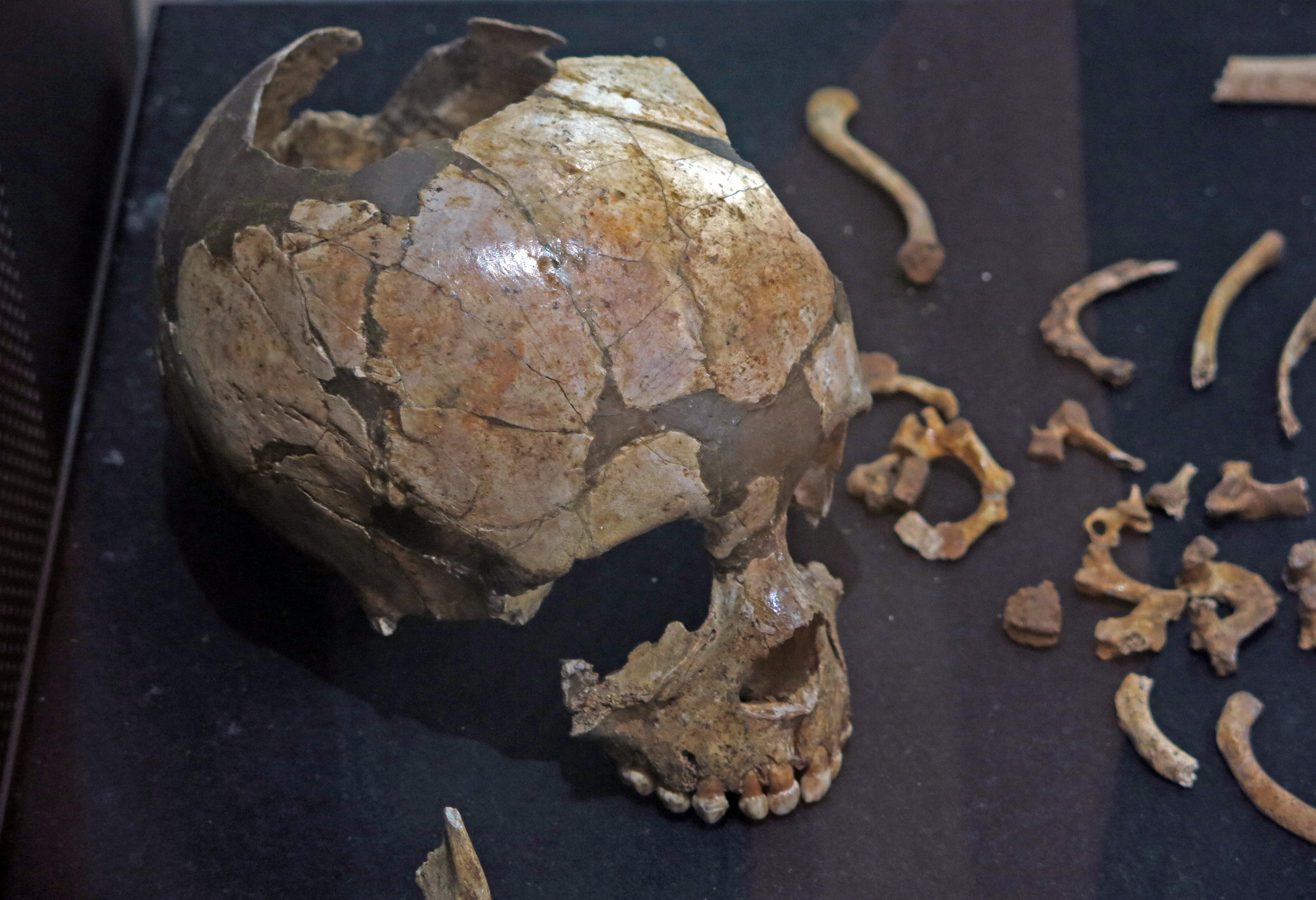 The skeleton is that of a young child apparently aged 2 to 3 years. A hand was at the level of the skull, whose face looked down, while the chest is resting on the right side. Both femurs are in the same horizontal plane, forming an angle with the spine of 135° bending backward, with the tibia and fibula at right angles, also towards the back with the femurs.