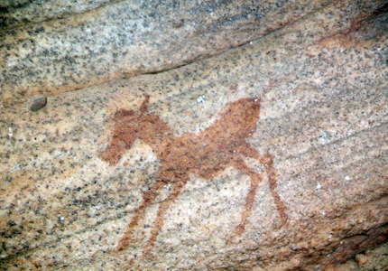 Site 9: Truncated painting of an eland with (probably) the white (?) colour gone. For unknown reasons, these animals were almost always polychromic. Even 2 000 km away that was the custom.