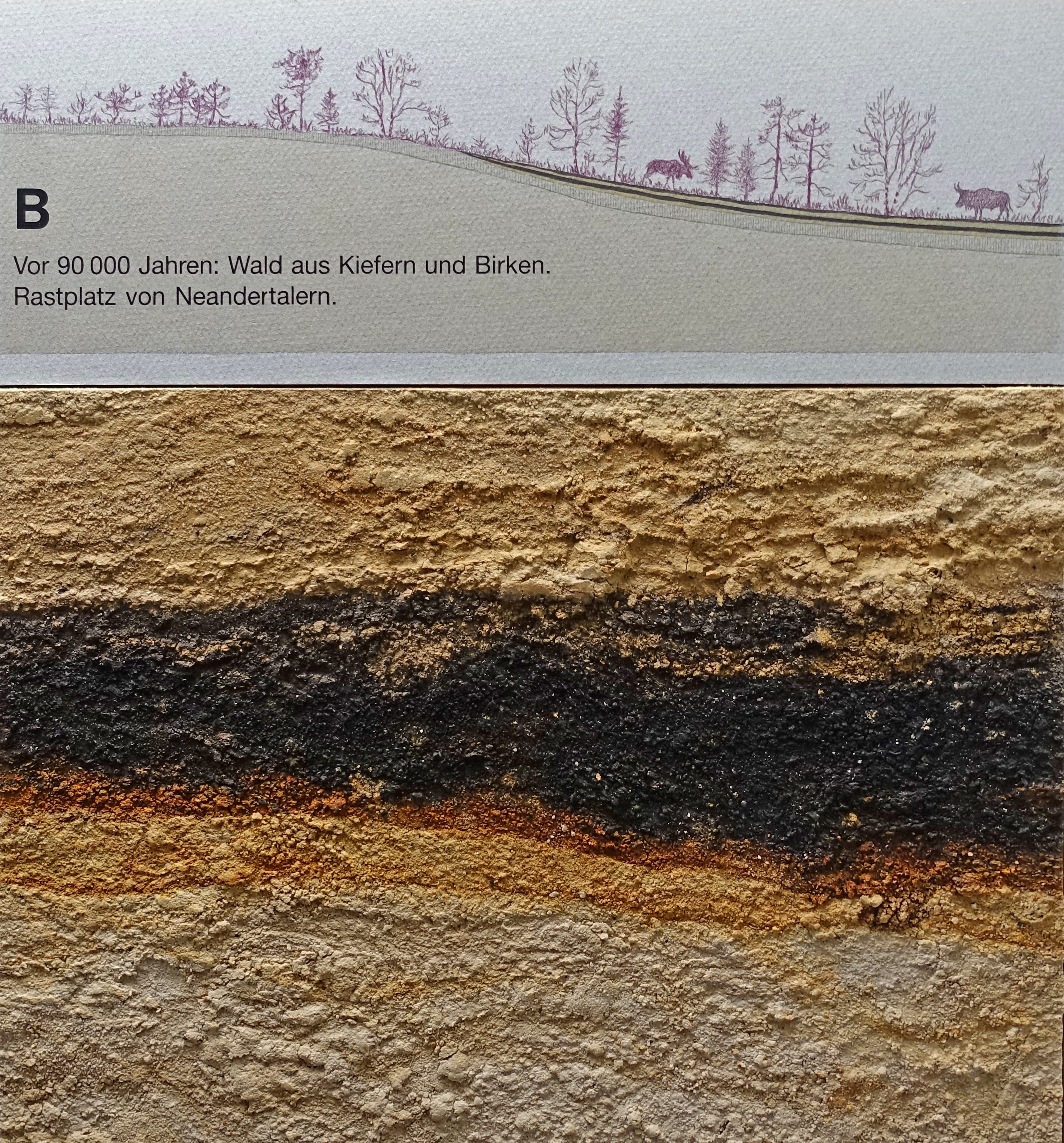 Schalkholz, layer B: 90 000 years ago: A forest of pines and birches, visited by Neanderthal people.