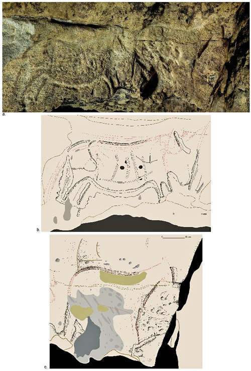 The most frequently portrayed animal is the horse, with 27 figures and a proportion of 71% of the depicted animals; this is a high percentage for a Palaeolithic cave-art site.