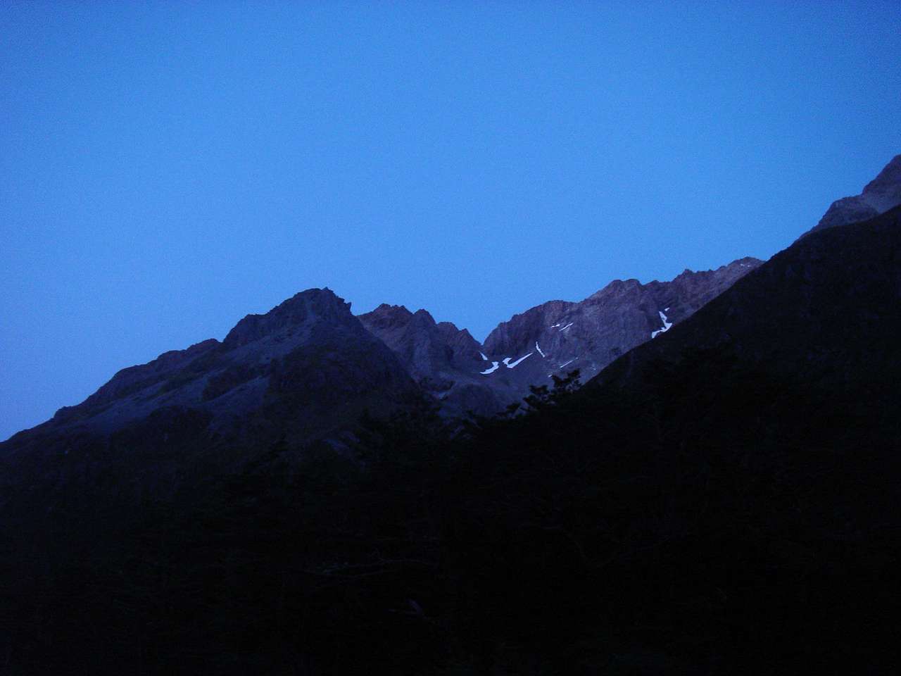 Blue Lake Hut, photographed here towards evening, was comfortable and cosy.