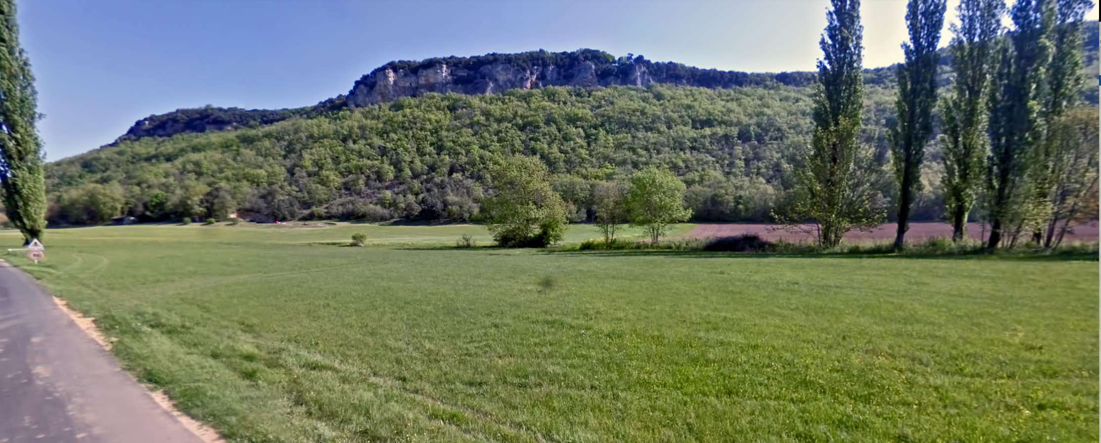 Cliffline of the Falaises du Conte. Grotte Vaufrey is on the far left of the cliffline in this image.