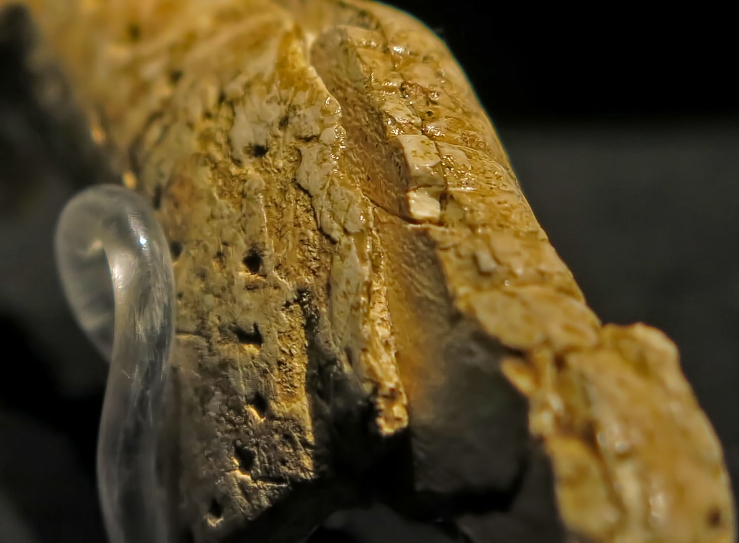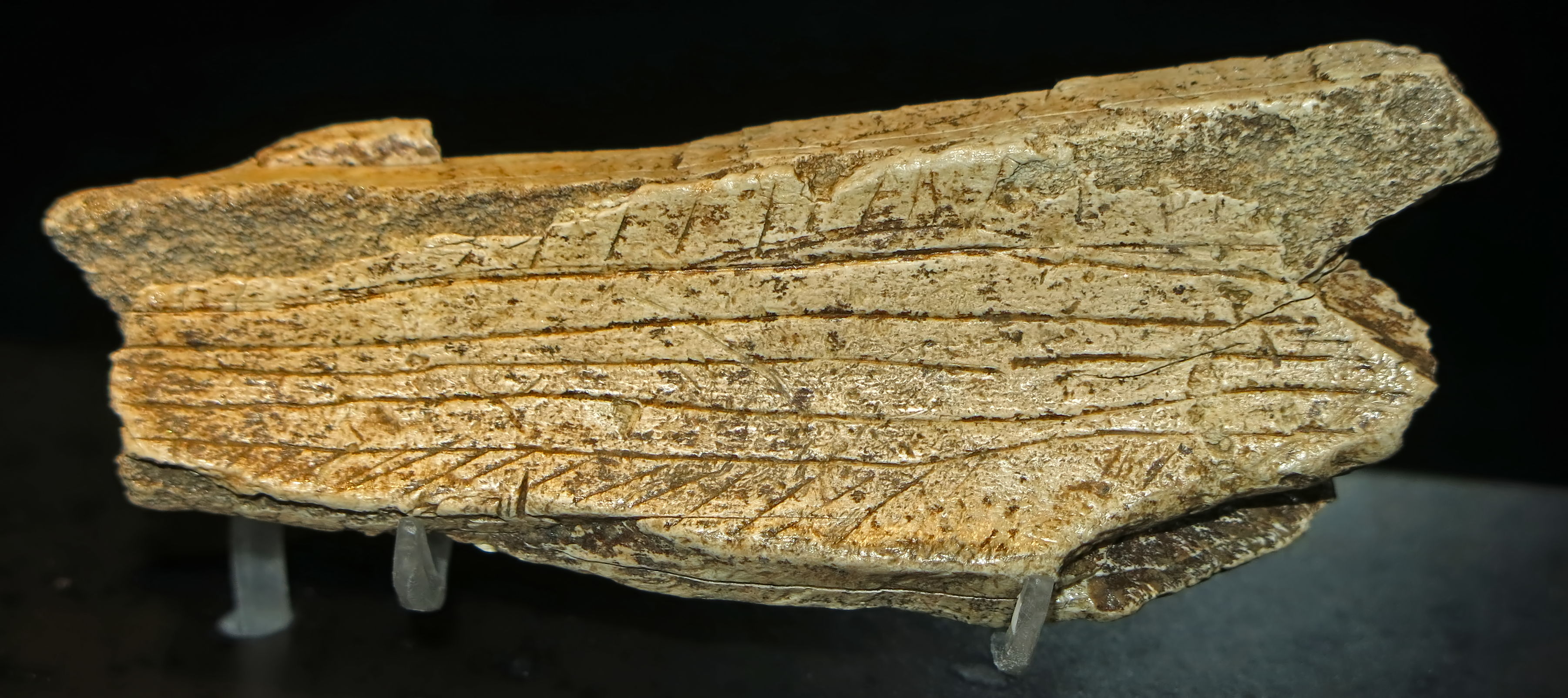 Fragment of mammoth ivory bearing transverse cuts, circa 35 000 years old.