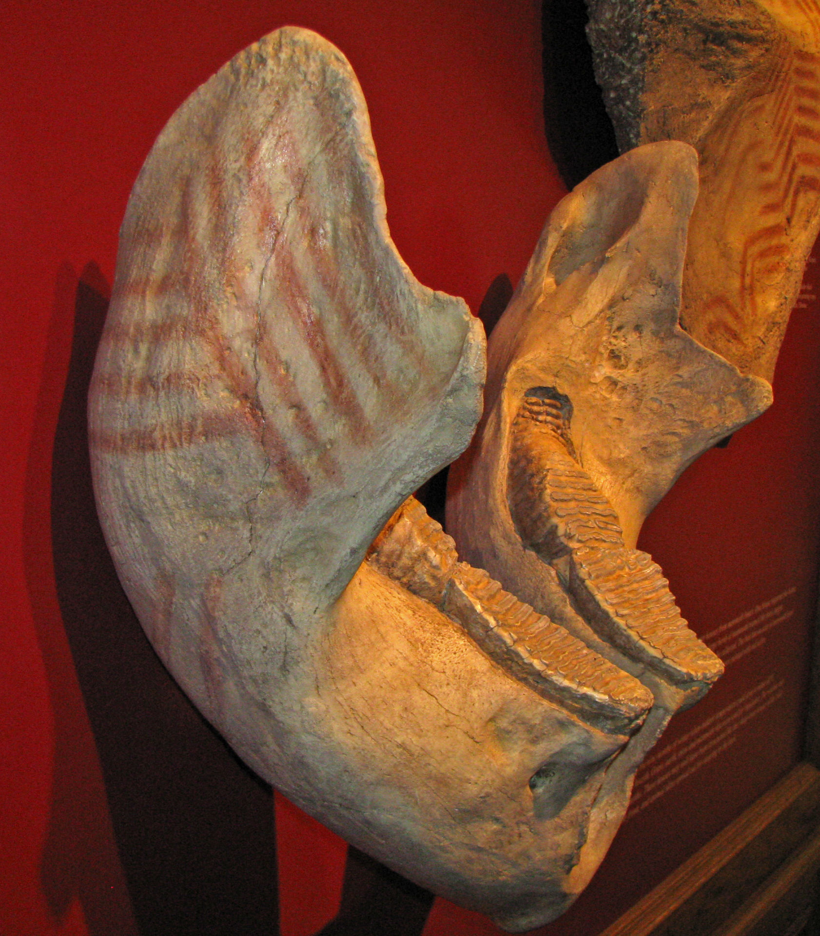 This shoulder blade and the jaws of a mammoth have been decorated and may be musical instruments, played by striking.